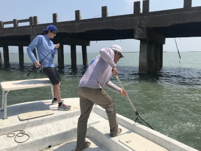 I use a variety of techniques. But I prefer site fishing in the clear water and poling my clients up to tailing reds. The Laguna Madre is a great location for fly fishing. We also use live bait for children and beginners. I enjoy showing the kids a good time.